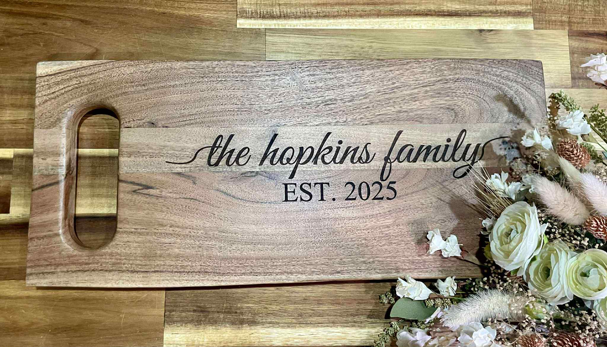"Etching memories into every grain—custom engraved wooden cutting boards for a personal touch in your kitchen."