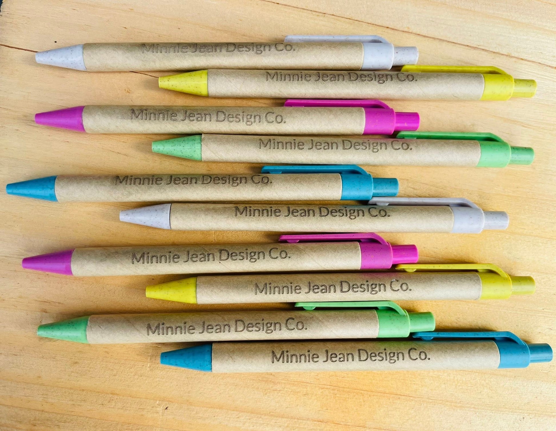 Brand Your Business with our pens. Black ink and cap color assorted. We engraved with your business name. Pens are sold by the dozen and all dozens must be say the same thing.